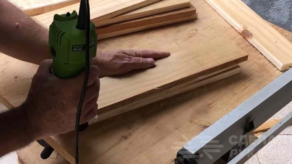 На следующем этапе необходимо будет отрезать восемь дощечек одинаковой длины. Их также обрабатываем фрезером.