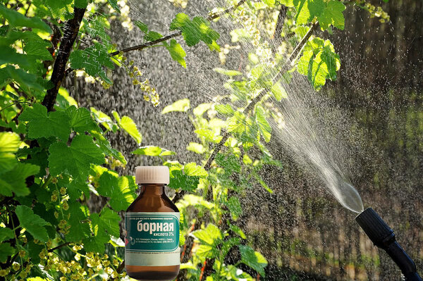 Чтобы улучшить появление завязей, применяется состав на основе борной кислоты. Процедура проводится в мае. Улучшает опыление. Положите в ведро с водой 20-30 грамм кислоты, хорошо перемешайте, проведите внекорневую обработку кроны. Процедура является дополнительной к основным подкормкам.