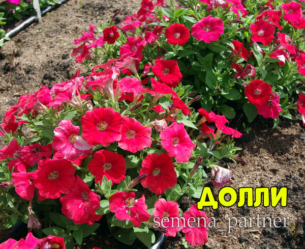 На фотографии представлены популярные гибридные петунии от агрофирмы "ПАРТНЕР": МИРЕЛЛА, АННЕТ, ФЛОРЕНЦА, ДОЛЛИ.