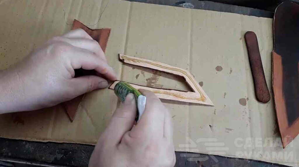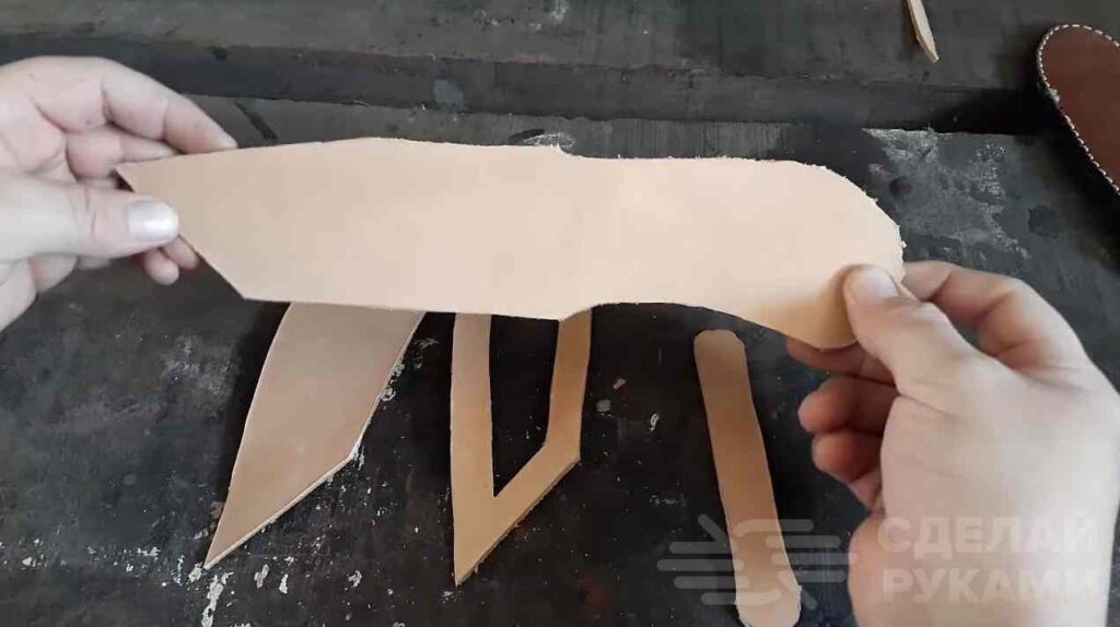 На следующем этапе автор красит кожаные заготовки. Если цвет кожи вас устраивает, то этот этап можно пропустить.