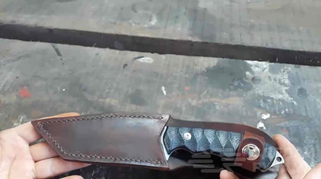 В завершении останется только прошить чехол и прикрепить на заклепку ремешок для фиксации ручки ножа.