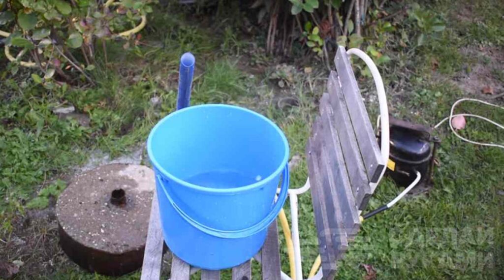 Автор предлагает временно использовать компрессор от холодильника. Таким образом, можно обеспечить себе хоть какие-то поставки воды «с глубин», если других вариантов нет.