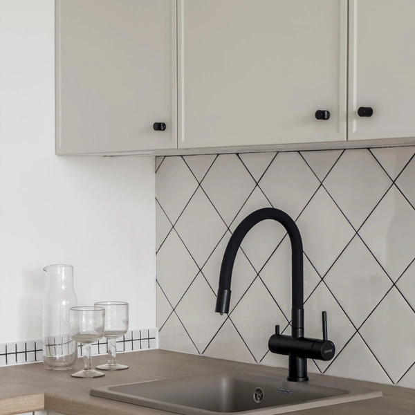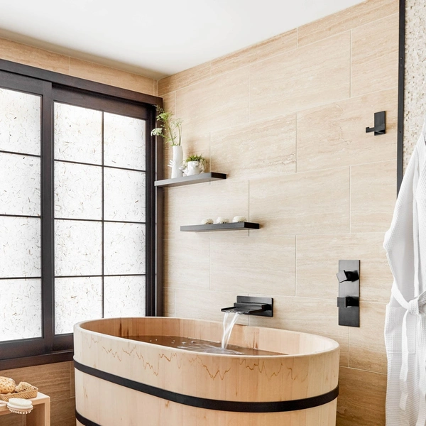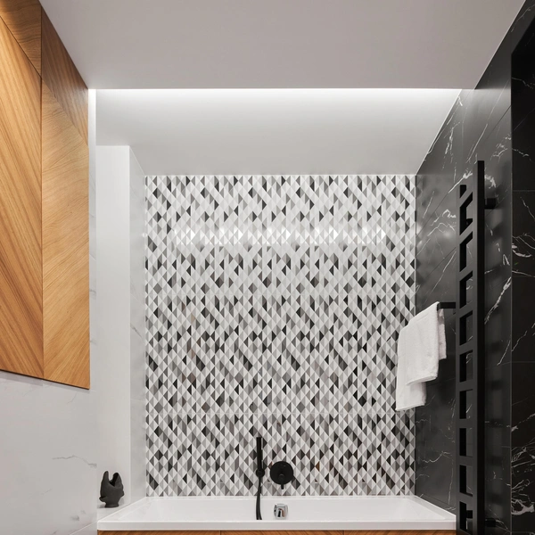Черная сантехника уверенно завоевывает позиции в дизайне интерьеров, становясь одной из ключевых современных тенденций для ванных комнат. Ее главная сила — в умении создавать выразительные контрасты. Сочетание черных смесителей, душевых стоек или даже целых ванн с классической белой керамикой рождает графичный, почти архитектурный эффект. Этот прием мгновенно задает пространству четкий ритм, делая его визуально собранным, стильным и актуальным. Такая палитра — беспроигрышный вариант для тех, кто ценит лаконичность и современную эстетику.
