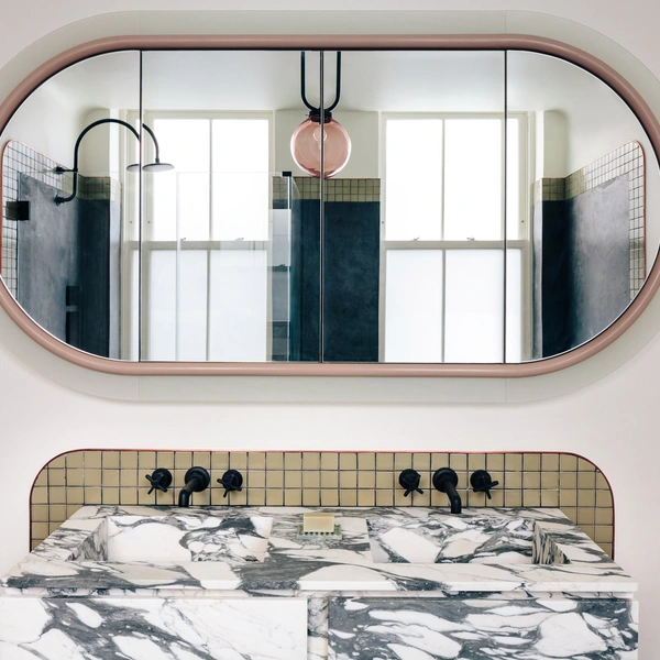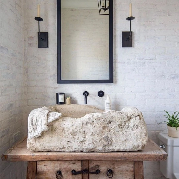 Если ваша цель — не просто модный интерьер, а атмосфера солидности и роскоши, черная сантехника станет отличной базой. Дизайнеры рекомендуют сочетать ее с благородными натуральными материалами. Теплота темного дерева, глубина зеленого мрамора или фактурная кожа мебельных фасадов создадут сложный и очень дорогой образ. В таком окружении черный цвет теряет свою строгость, становясь элементом элегантной классики.
