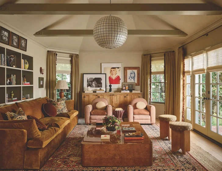 Интерьеры нового дома Эмме Робертс помогла оформить студия Pierce & Ward. Актриса поставила дизайнерам нестандартную задачу — создать пространство, которое не будет выглядеть новым, но в то же время будет неподвластным времени. Часто для этого выбирают усредненные аккуратные решения, но Эмма решила уйти в тотальный максимализм.