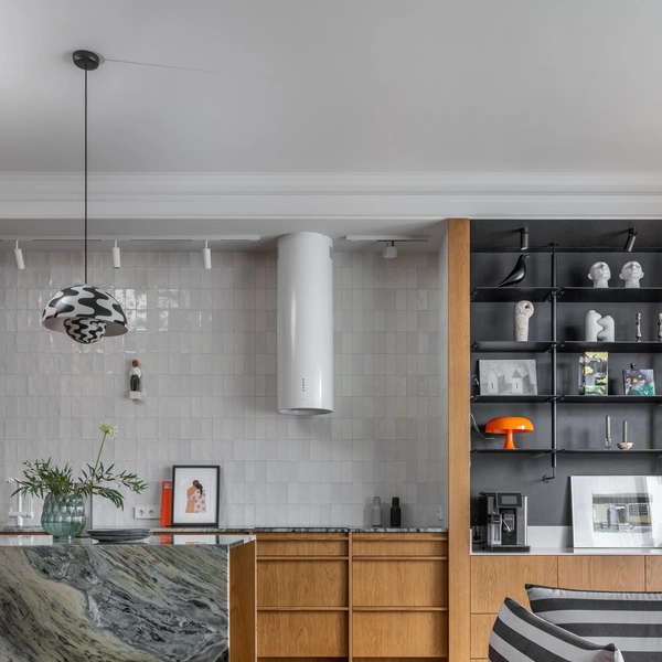Оказывается, эти проблемы легко решаются с помощью дополнительных мест хранения в кухонном острове, в нижних шкафах или на открытых полках. Кухня без верхних шкафов выглядит визуально легкой и не такой массивной, а само пространство приобретает дополнительный объем и «воздух». Примеры модных кухонных интерьеров без верхнего яруса из проектов российских и зарубежных дизайнеров — перед вами!