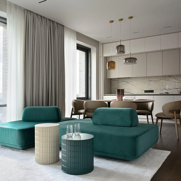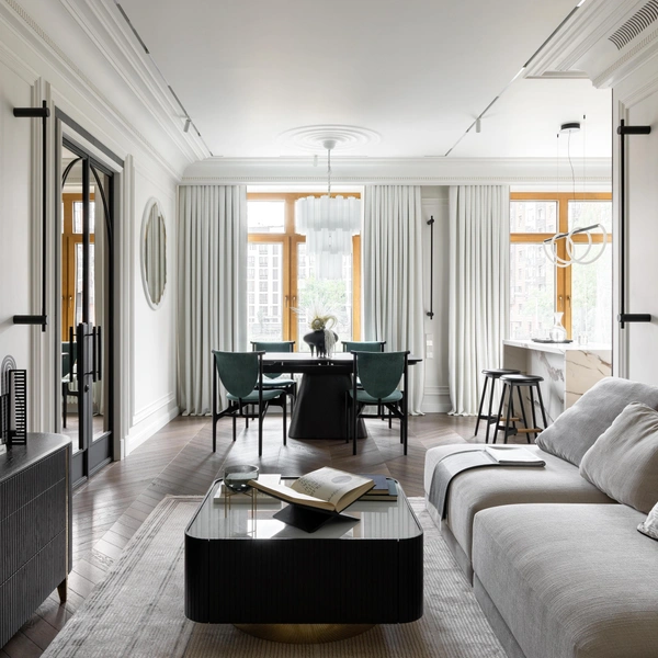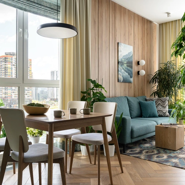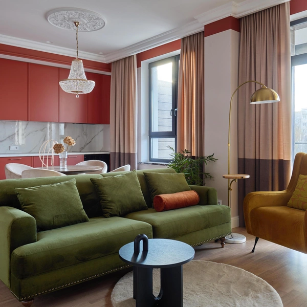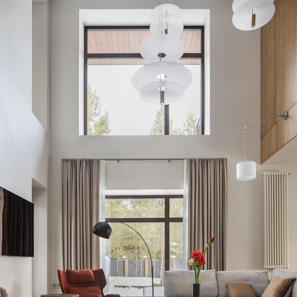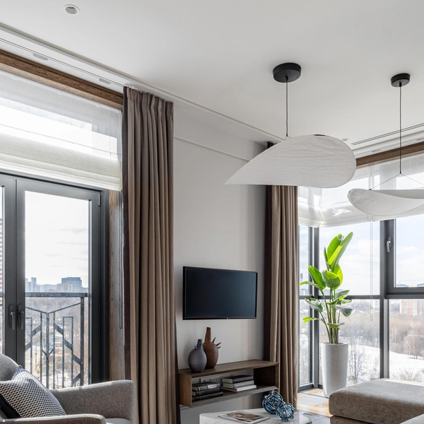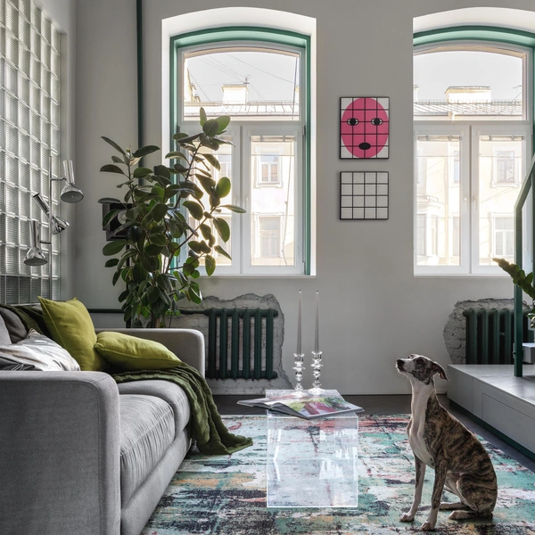 Основной плюс гостиной с двумя окнами — большое количество солнечного света, что помогает визуально расширить границы пространства и позволяет использовать любые оттенки в оформлении — от спокойных нейтральных до насыщенных плотных красок. Сами окна также являются частью интерьера: яркая рама или акцентные детали на подоконнике сделают комнату интереснее и индивидуальнее.