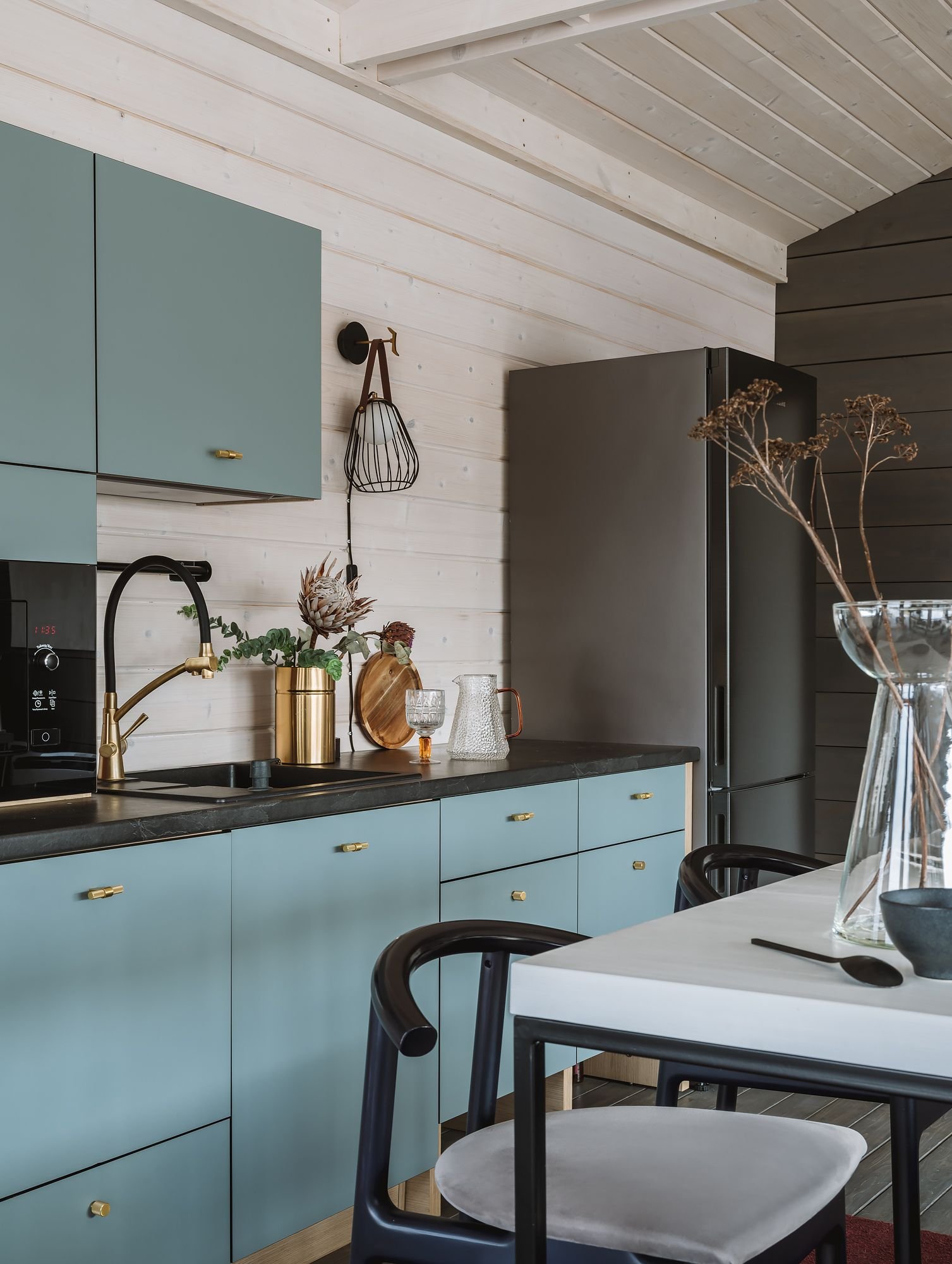 От входа в дом начинается кухня-гостиная – самая главная комната в жилище, его смысловой и визуальный центр.