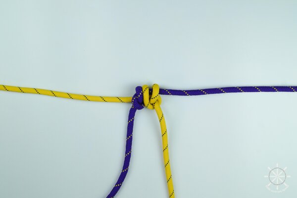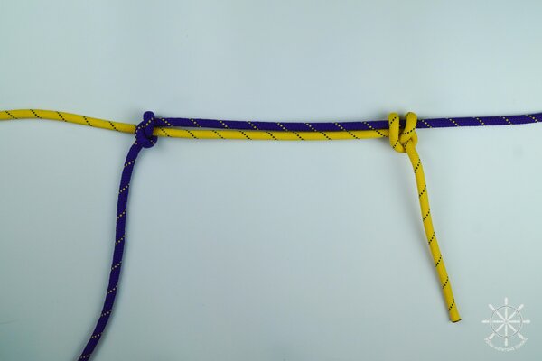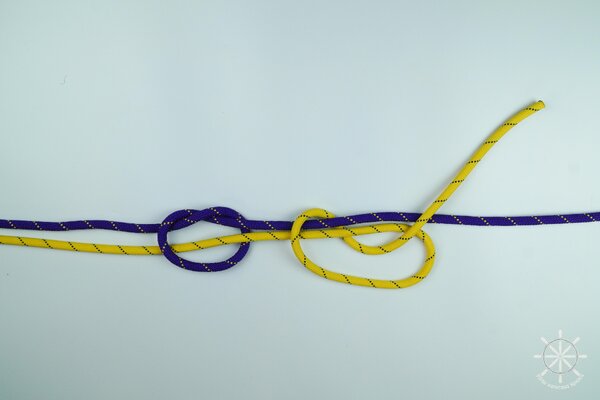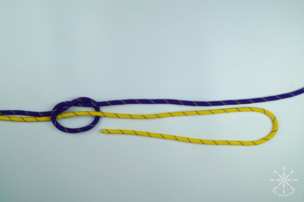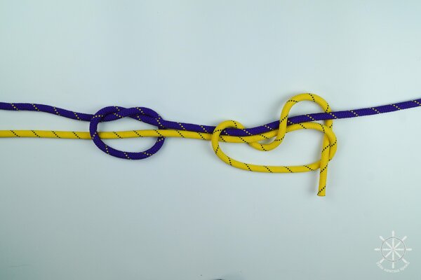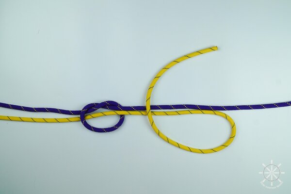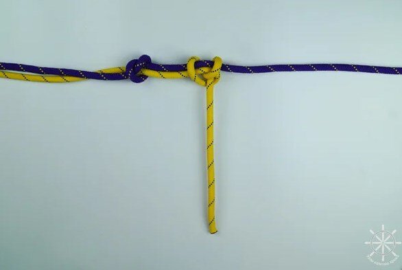 5. Накиньте рабочий конец желтой веревки поверх обоих коренных концов (фиолетового и своего).
