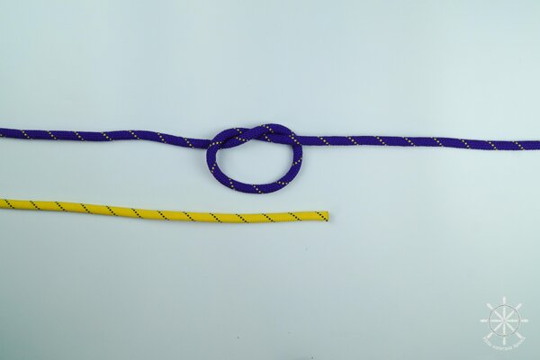 2. На одной из веревок (например, фиолетовой) завяжите простой узел, но не затягивайте его полностью.