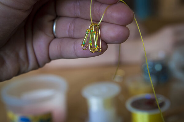 сделать такие, а дочка - сразу загорелась, надень, говорит мне, красиво! Хотя все булавочки я зажимала пассатижами, но если носить такой, то лучше, конечно,