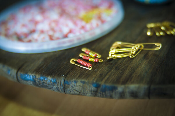 Бисера - много, булавки тоже нашлись, правда маленькие, зато - быстрее будет, думали мы... ага, как же!
