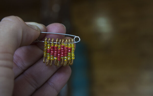 вот что: булавочный браслетик. Ни за что бы не догадалась, что это сделано из булавок!