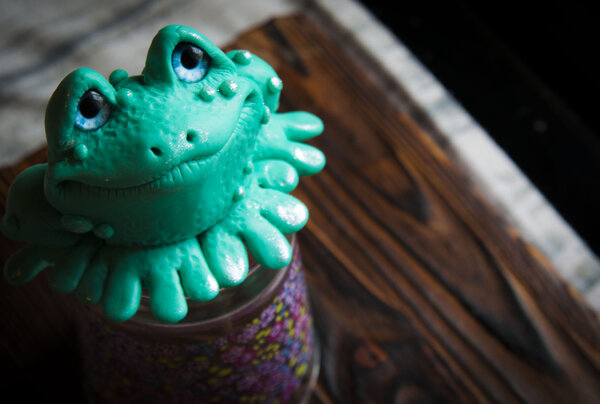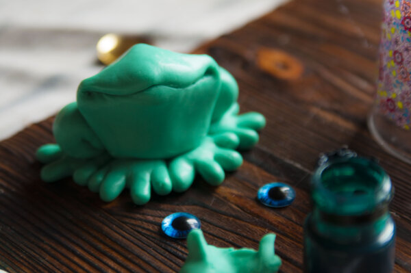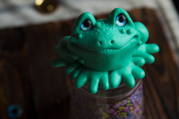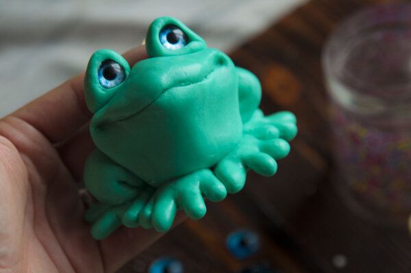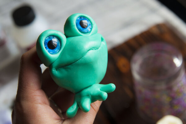 Лепить уже можно потом как угодно, у меня - простая мультяшная лягушка, без предварительных эскизов, как всегда))) Масса застывает быстро, на всю лепку есть максимум 30 минут.