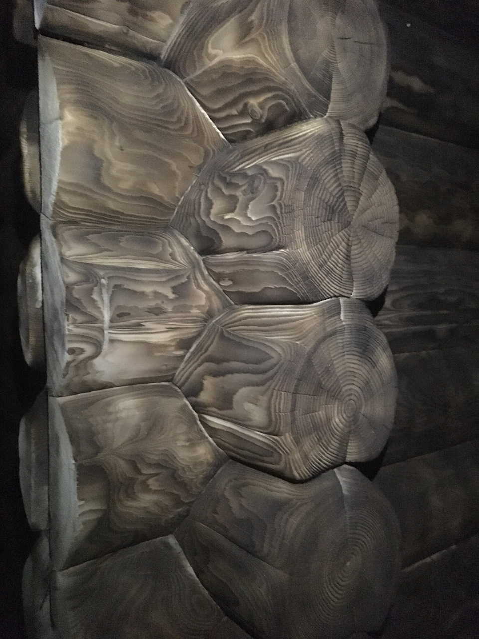 Интересно, что на участках, где древесина была сильно обуглена, после пескоструйной обработки проявляется эффект, напоминающий поверхность, обработанную паяльной лампой (техника обжига «Шу-Суги-Бан»). Это придает интерьеру уникальный, современный и стильный вид.