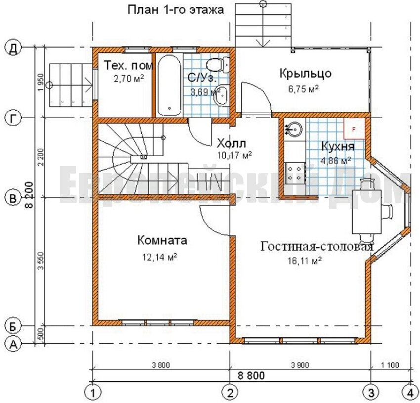 На первом этаже запланировано также техническое помещение с отдельным входом с улицы.