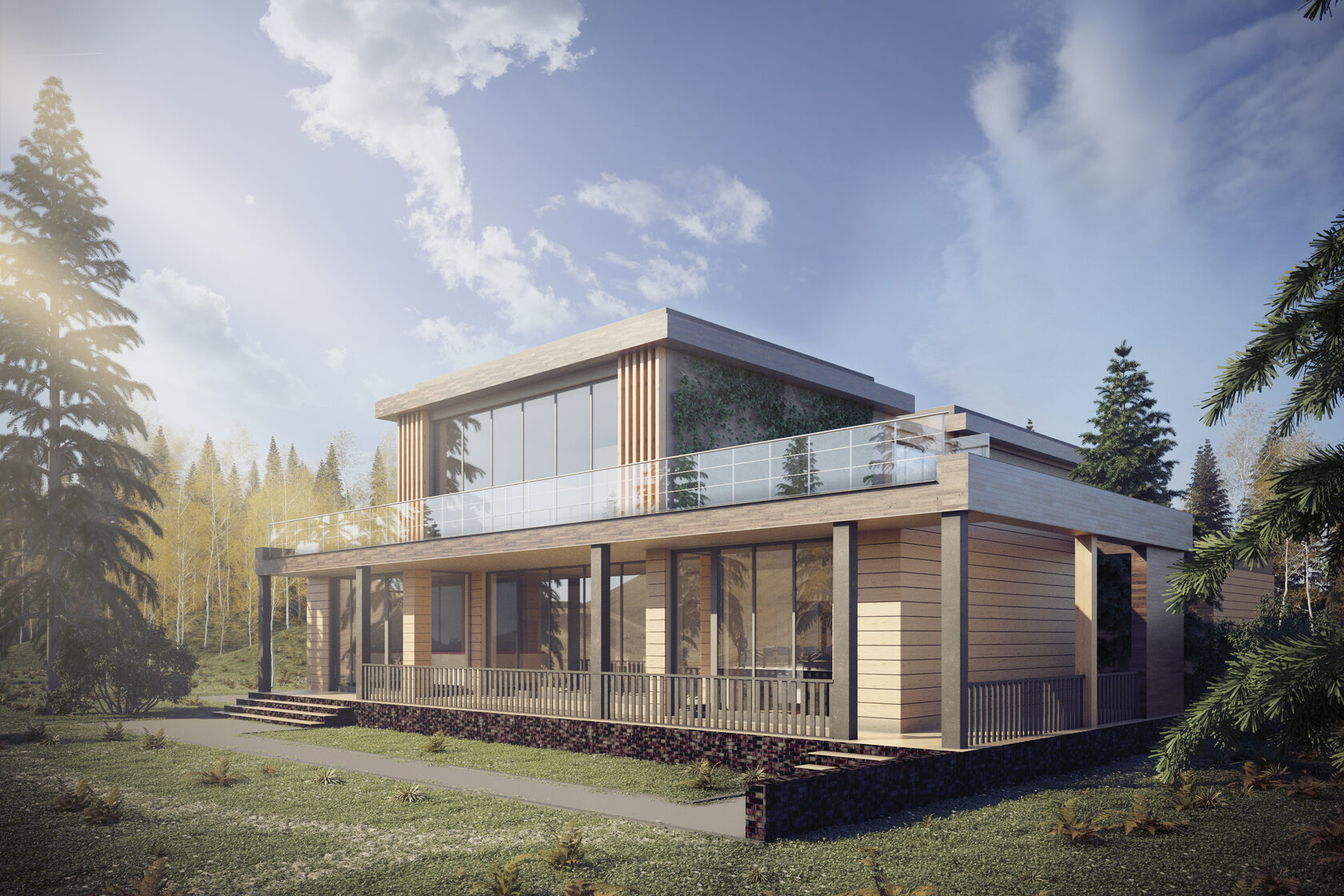 Большинство частных домов возводятся по каркасной технологии. Несущий каркас изготавливается из прочного клеёного бруса, а снаружи здание обшивается деревянной вагонкой, которая затем окрашивается для защиты и эстетики.