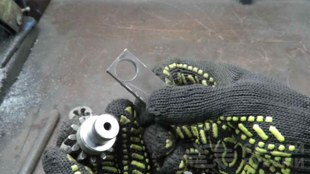 Благодаря наличию резьбы, можно отрегулировать оптимальный зазор между шестерней и плашкой. Плашку надо приварить к валу.